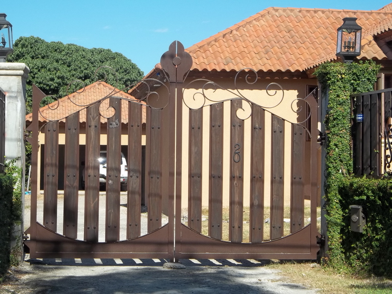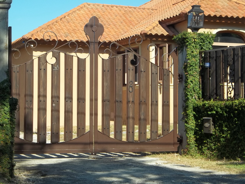 Rustic elegant wood and metal entrance gate.