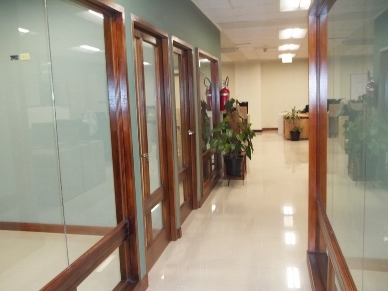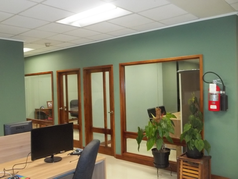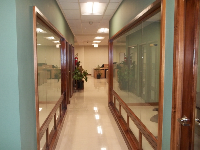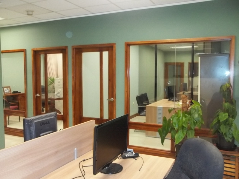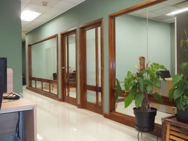 Installation of I.T. Dept- Porcelain tiles, Drywall partitions, Acoustic ceiling tiles, Paint, Mahogany stained window frames with Butt glass, doors, Skirting board and Crown moulding.